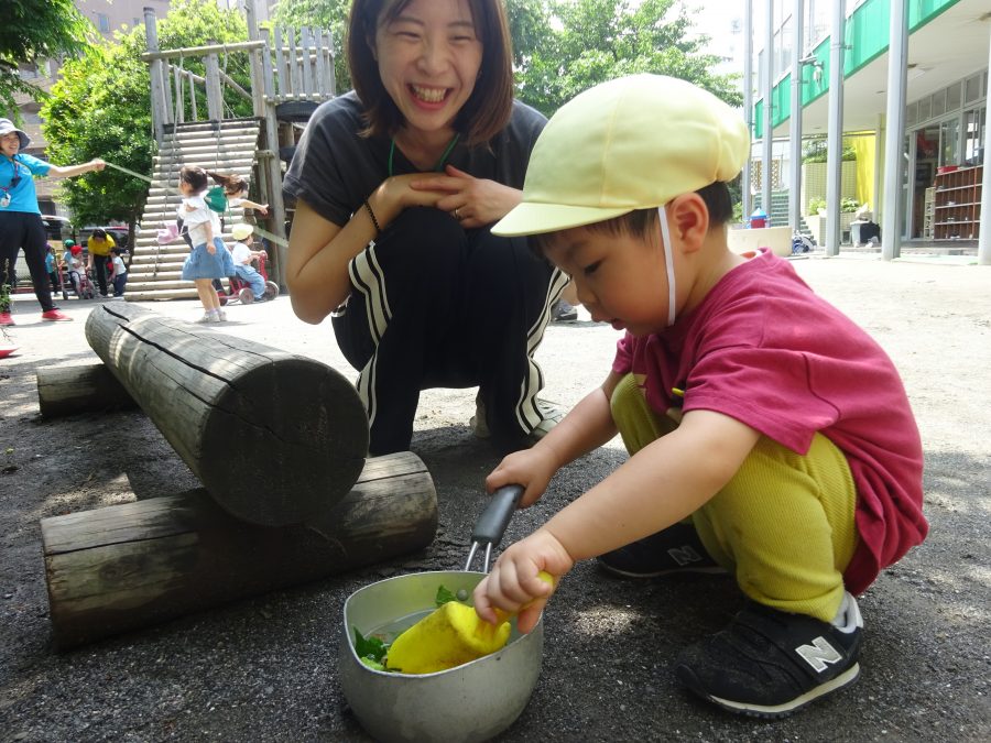 2024.05.30ひよこ組はじまりました!! 令和6年度ひよこ組が始まりました。 親子で登園した子どもたちは、お部屋のおままごとやブロック、園庭ではアスレチック、三輪車、ブランコ、砂場など、 好きな場所、好きな遊びで過ごします。 皆で集まり砂場で大きな穴に水をため、裸足になって水に足を付けると、ピチャピチャとした感触を味わいます。 新聞遊びではビリビリ破いたり、カサカサッと言う音を楽しみました。 次回はどんな遊びが待っているのでしょう。楽しみですね。