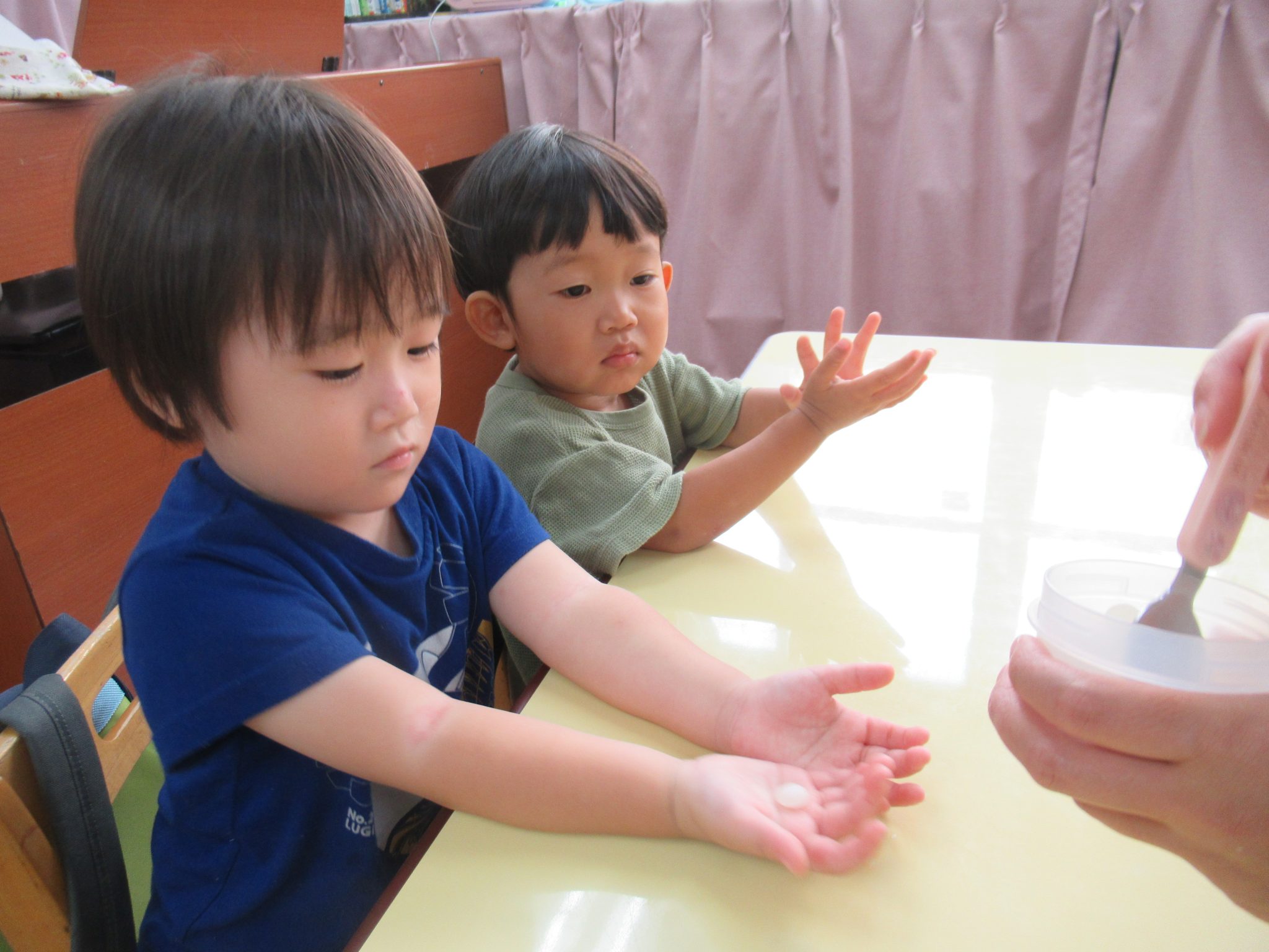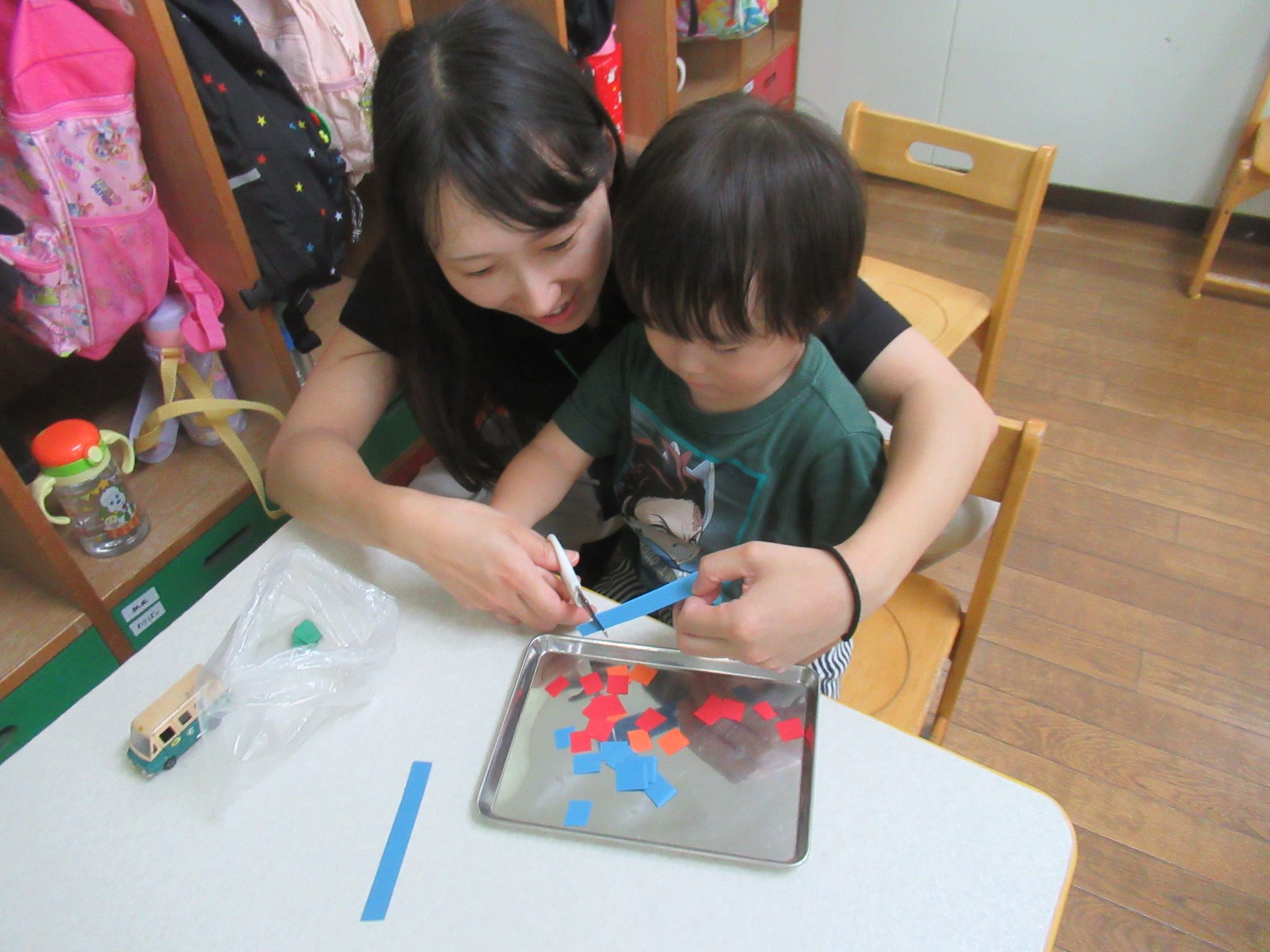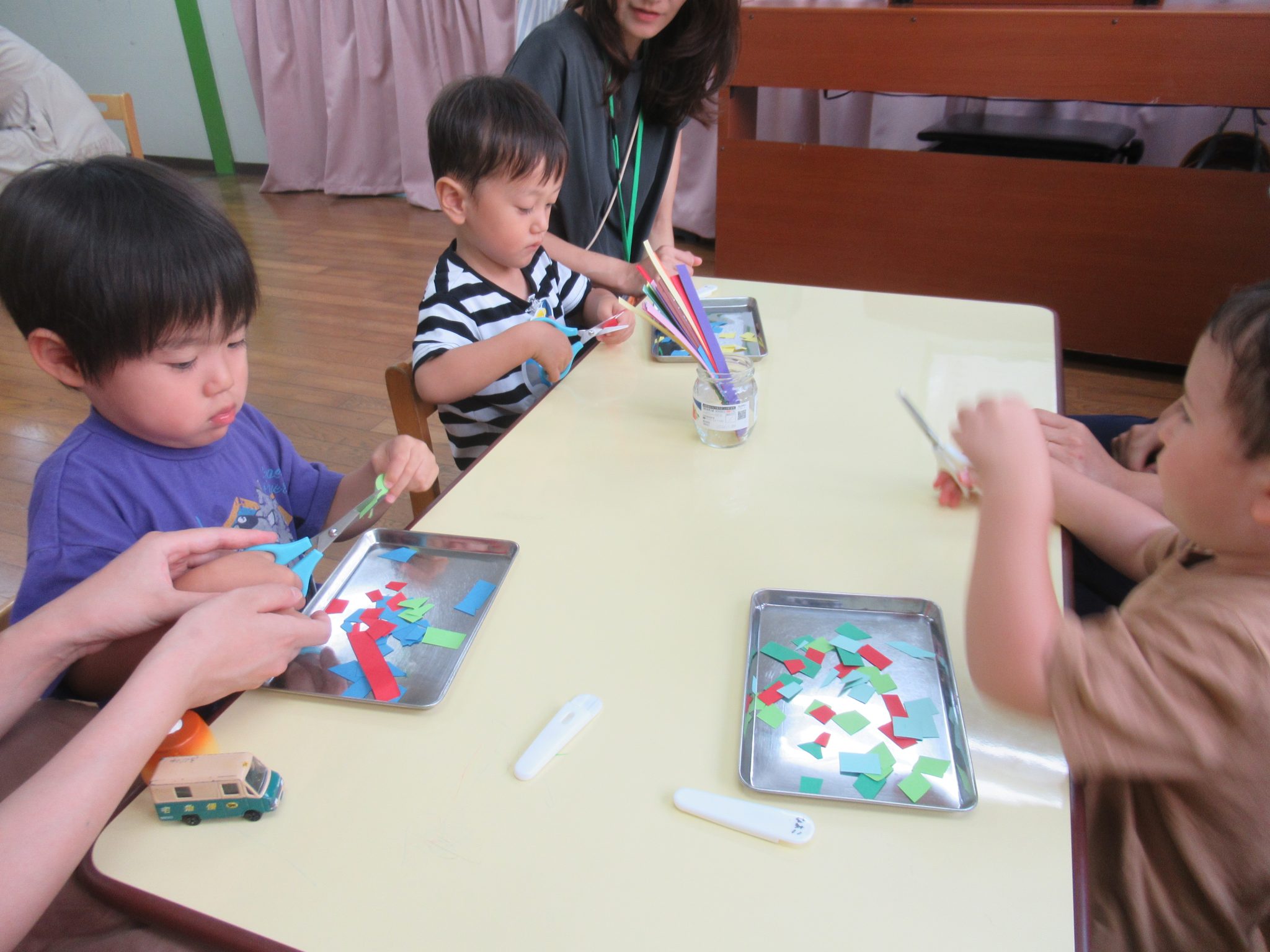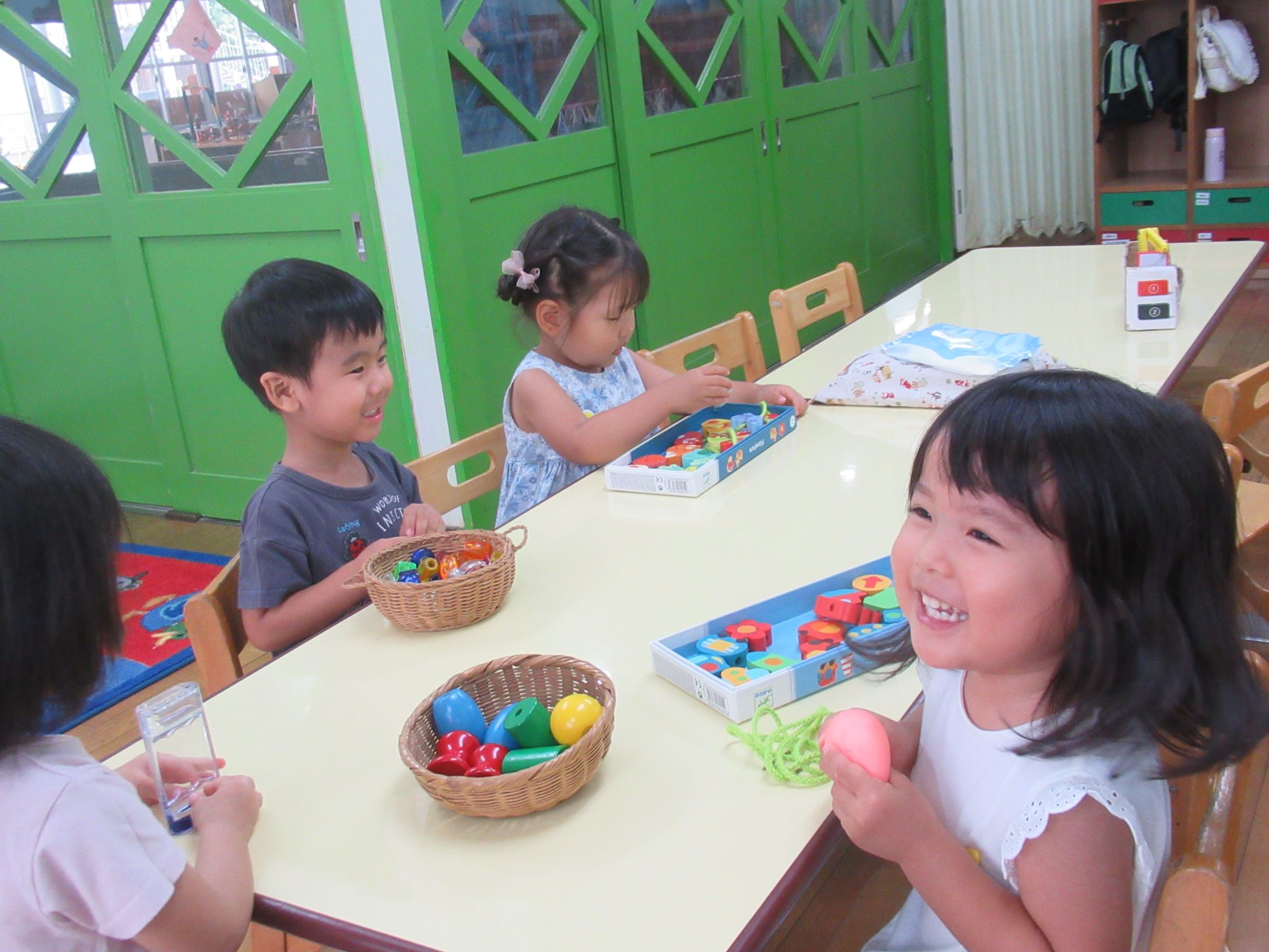 2025.09.30ひよこ組 9月の様子 夏休み明け、久しぶりの登園に、はにかんだような笑顔をみせる子ども達。保育室に入り、園生活を思い出すとすぐに木製のおもちゃやブロック、三輪車や砂場で遊び始めました。 みんなでダンスをしたり、ハサミを使った活動をしたりしました。 いよいよ母子分離が始まりました。子ども達のさらなる成長が楽しみですね。 10月もたくさん遊びましょう♪
