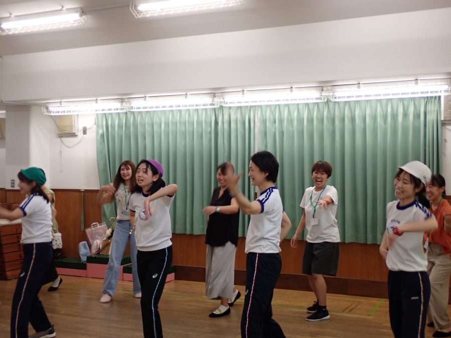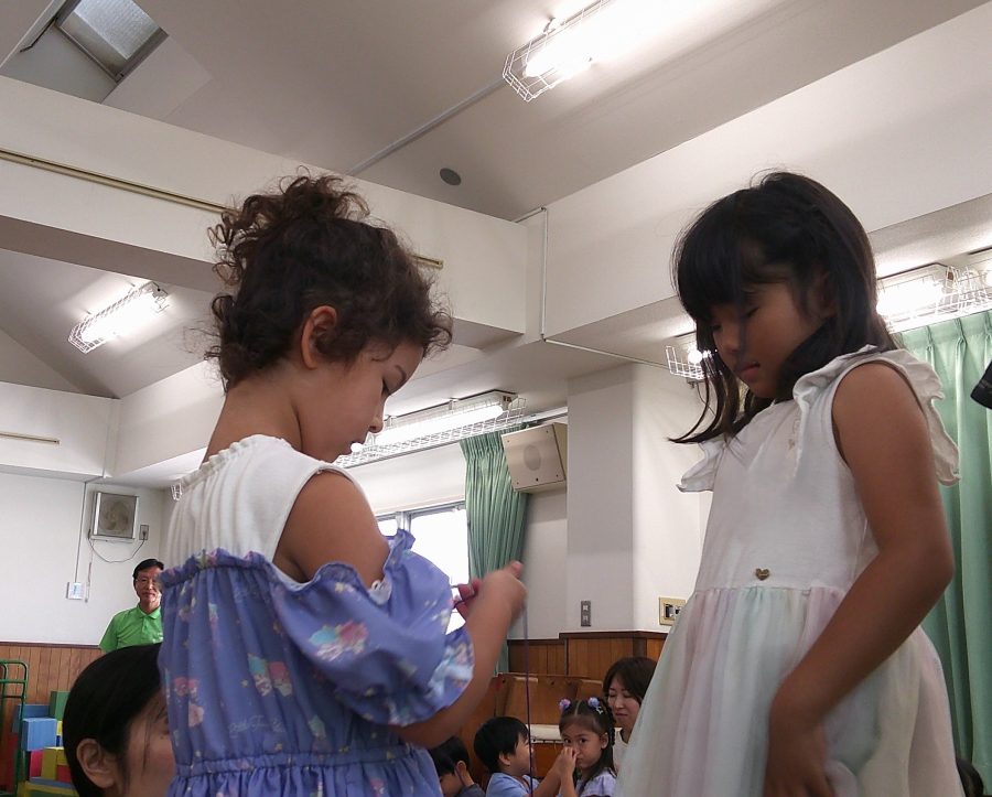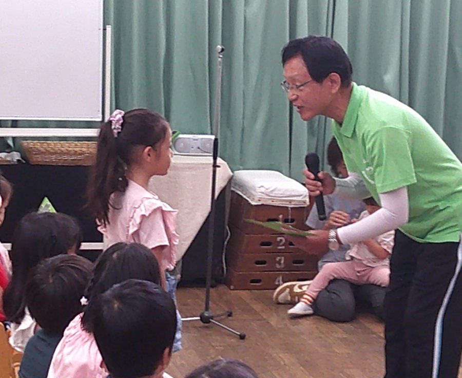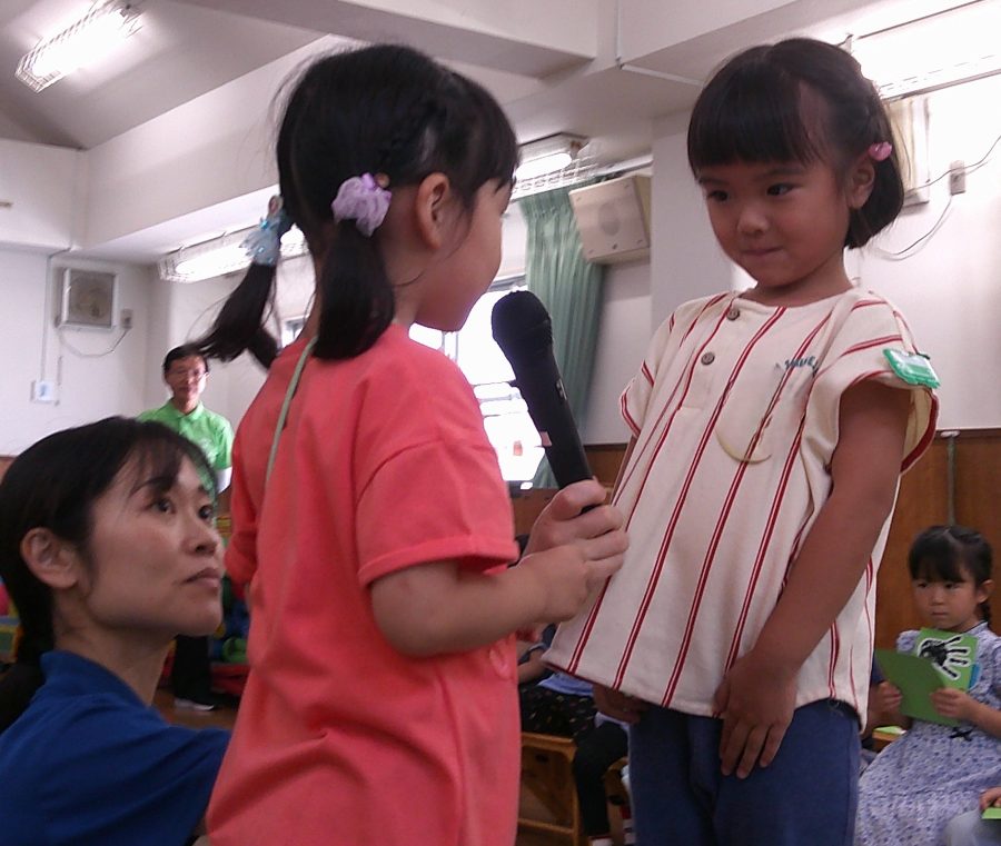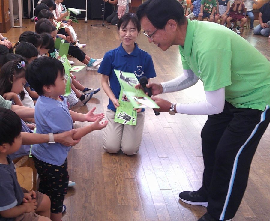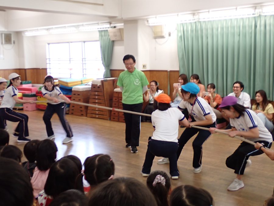 2025.10.249月生まれの誕生会 9月17日(水)は9月生まれの誕生会をしました。 カード、ペンダント、インタビュー。誕生月の子どもたちの嬉しそうな表情に会場が和みます。 そして、今月のおたのしみは先生たちによるミニ運動会。 見学の保護者の方々にも参加いただきました。