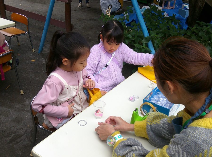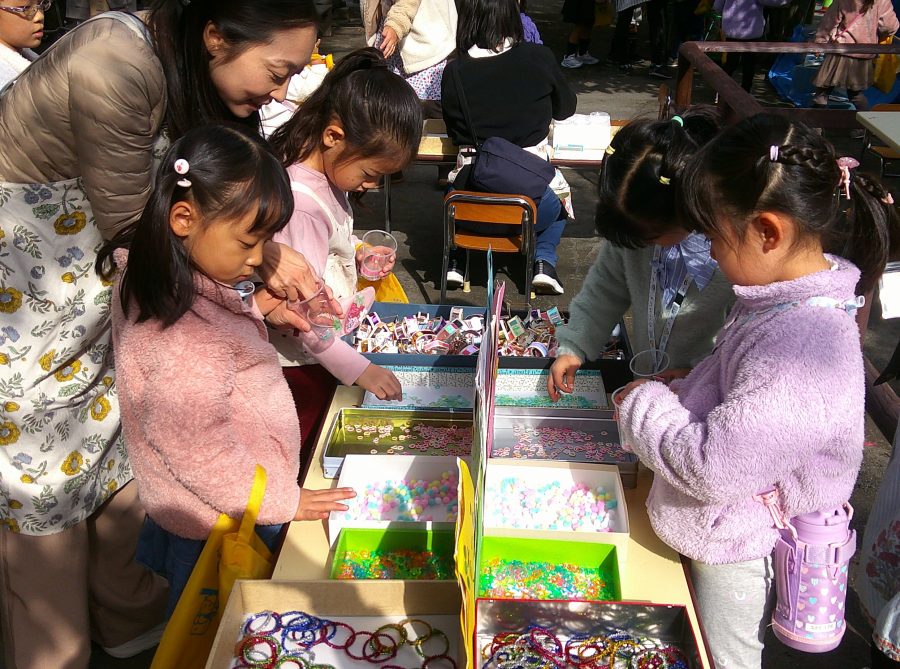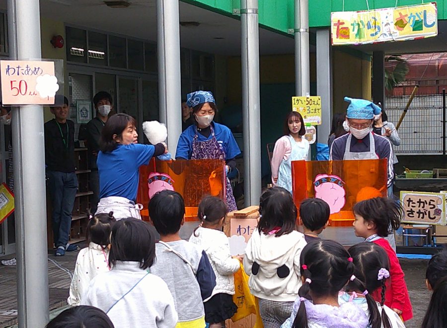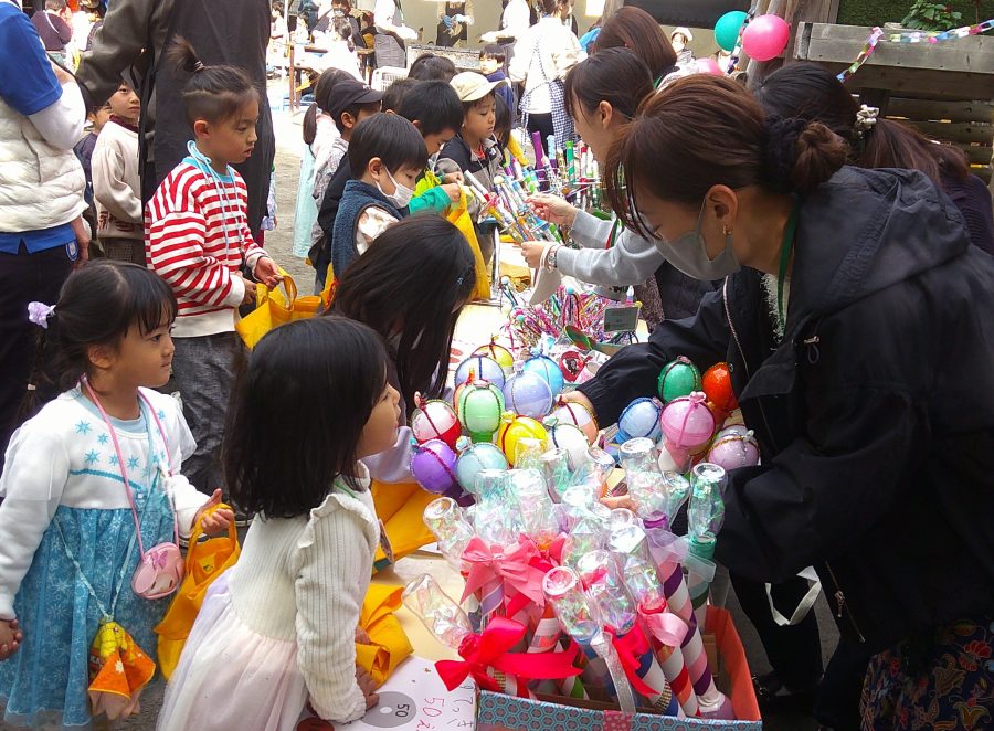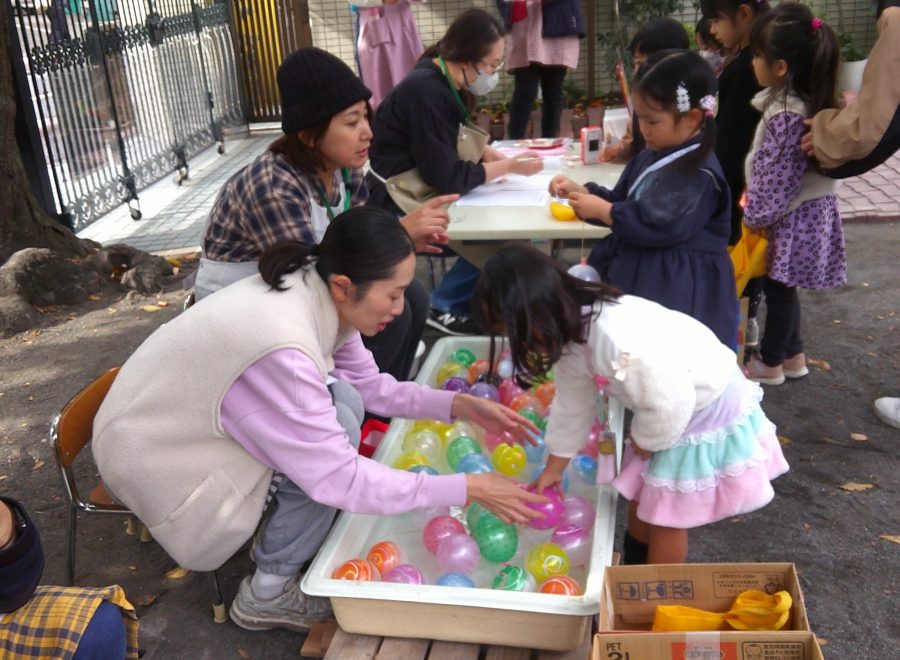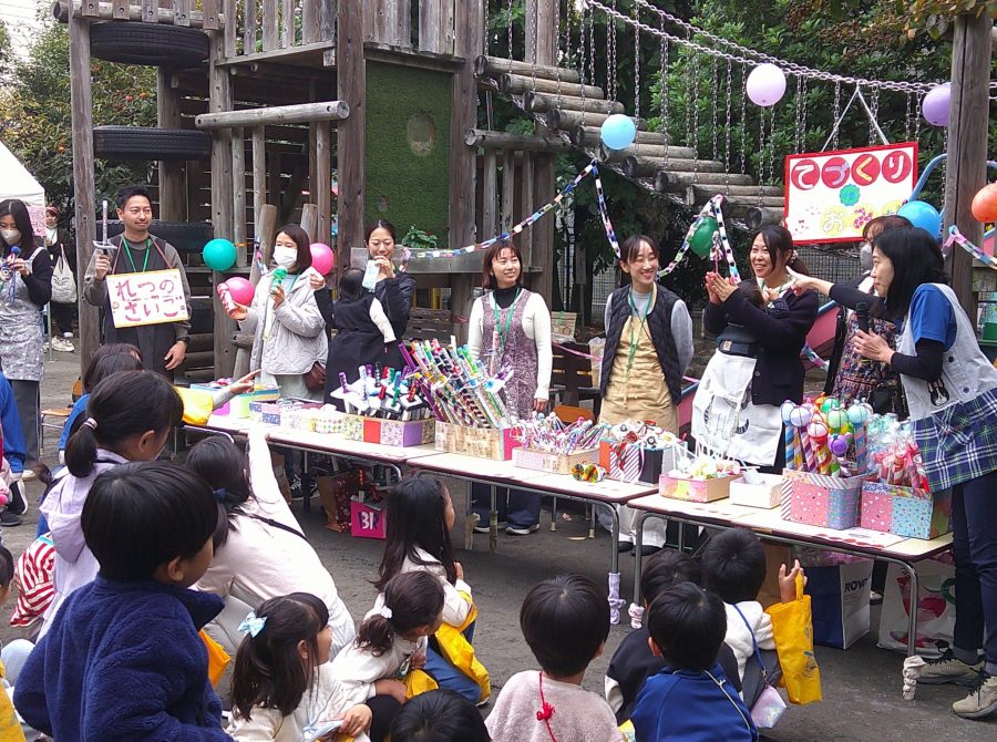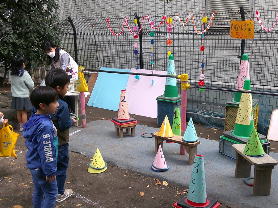 2025.11.28ふじみまつり 子どもたちの大好きな『ふじみまつり』が今年も開催されました。 ヨーヨー釣り、手作りアクセサリーやおもちゃ、焼きそば、綿菓子、 ゲームコーナーに迷路などなど。 園内に広がるお店屋さんで買い物をしたり、ゲームコーナーで遊びました。