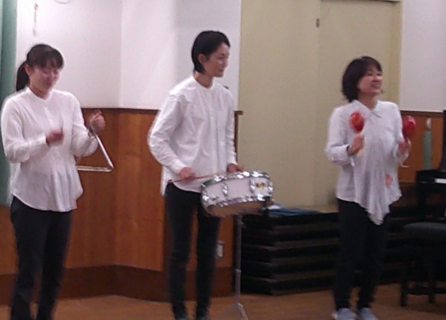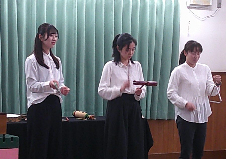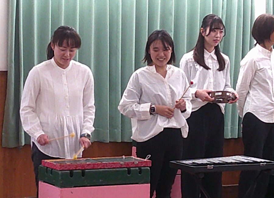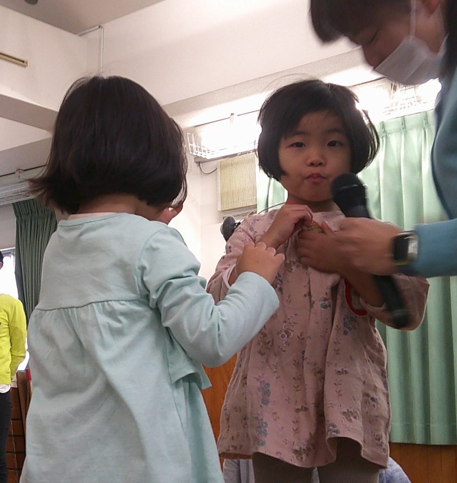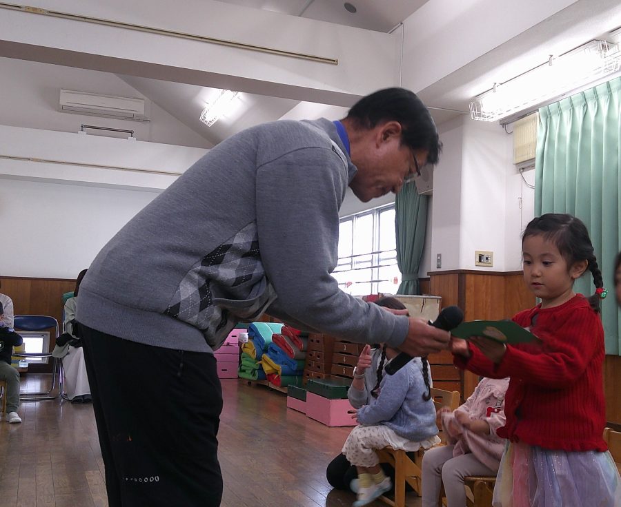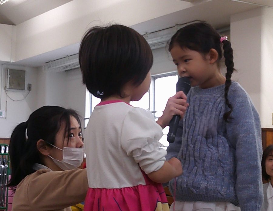 2025.11.2811月誕生会 11月の誕生日カードの表紙は腕時計。 プレゼントのペンダントを掛けてもらい、インタビューを受ける誕生月の子どもたちは ハニカミながらも嬉しそう。 今月のおたのしみ「音楽会」では先生たちによる歌と楽器の演奏を聴きました。