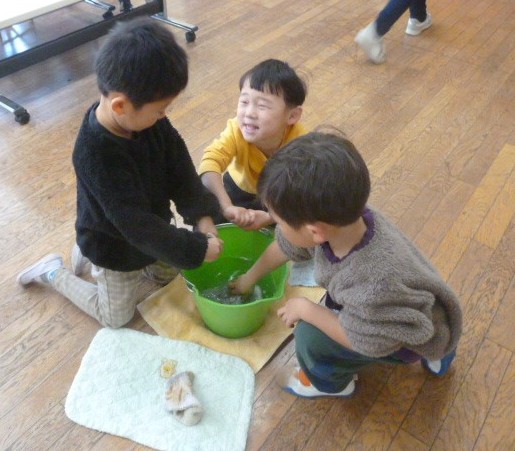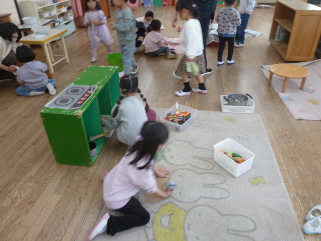 保育室に園庭たくさん遊んだ幼稚園をきれいにしました!!