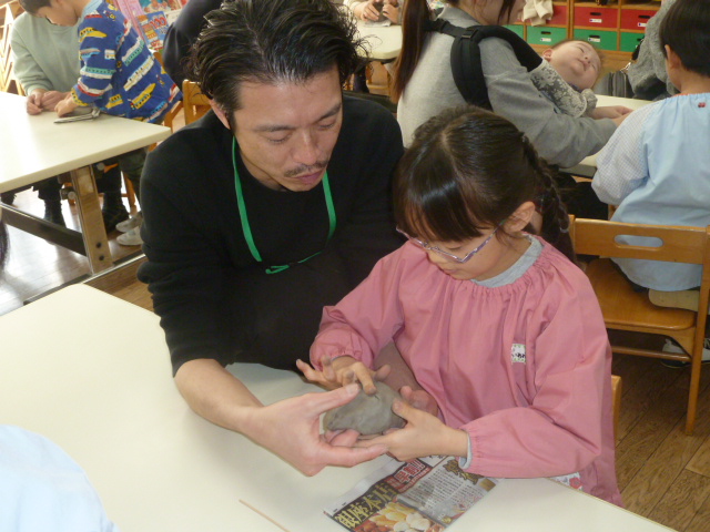 年長児陶器作り