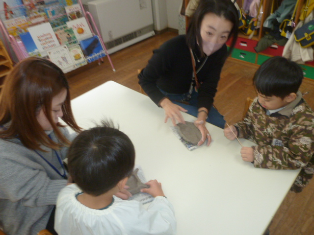 年長児卒園制作の一つに陶器づくりがあります。