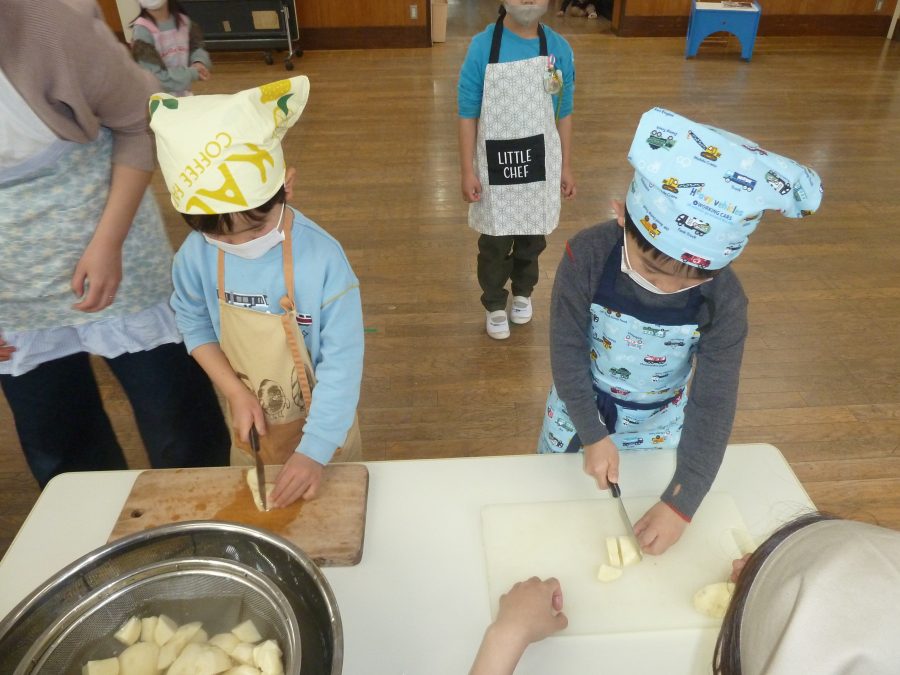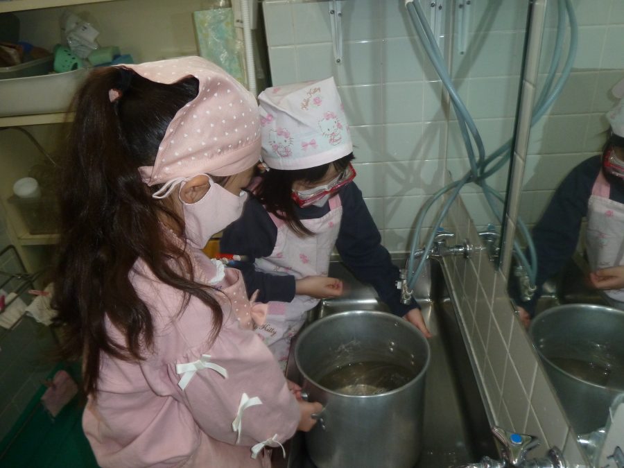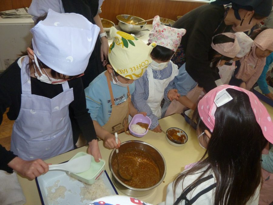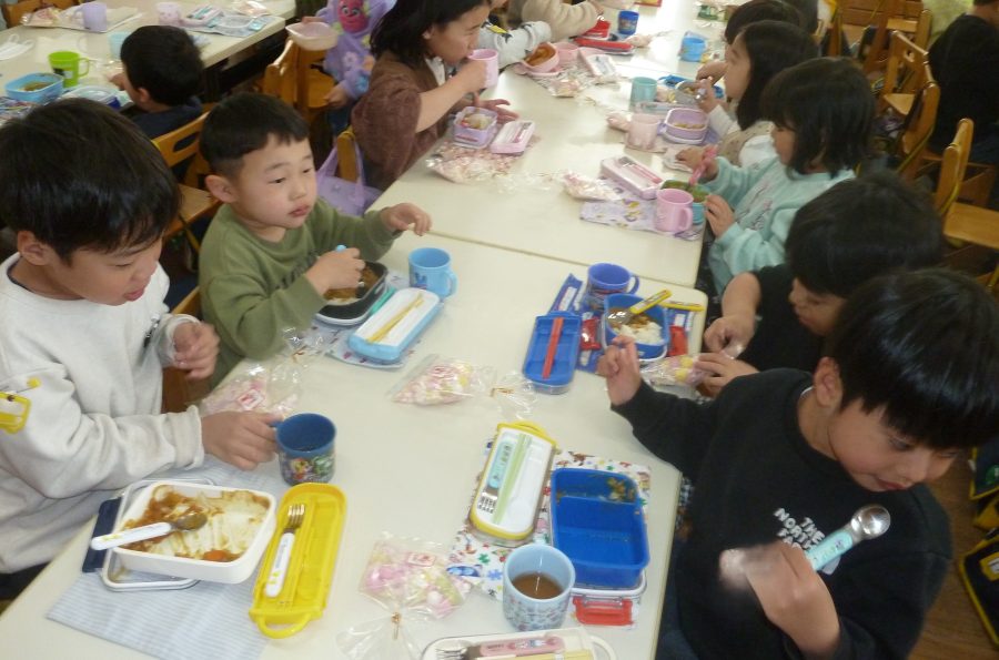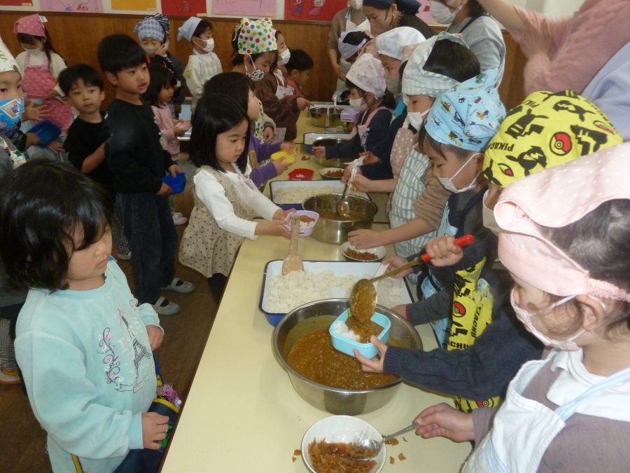 2026.03.27ひなまつり会 3月3日のひなまつりでは毎年恒例の年長児の作るカレーライスをいただきながらの ひなまつり会をしました。 カレーの香りが部屋中に広がり、子どもたちの食欲を刺激したようで、何杯もお代わりをしていました。