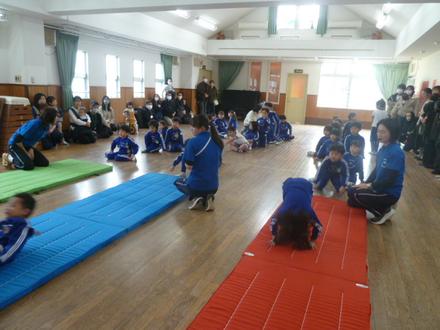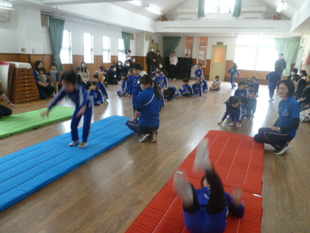 2026.03.27体育遊び総集編 園では年間を通して体育(運動)遊びをしています。 様々な体を動かす楽しさを遊びを通して展開しています。 この3月、年長児の活動の集大成に、体育遊びの一部を異年齢の子どもたちや保護者の方々に見ていただきました。