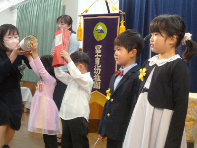 2026.03.27令和7年度卒園式 3月18日晴天に恵まれたこの日、卒園式を迎えた36名の冨士見っ子たちは、年中年少のお友達や お父さんお母さんに見守られる中、幼稚園を巣立っていきました。 修了証書をいただき、式を終えた子ども達の晴れやかな笑顔は 新生活の希望に満ち溢れ輝いていました。 卒園児の保護者の皆さまには在園中のご協力に感謝を申し上げますとともに、 これからのご家族皆様のご健勝とご多幸を心よりお祈りいたします。