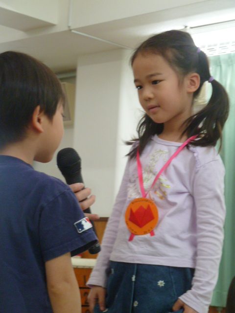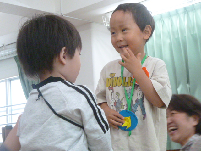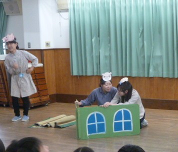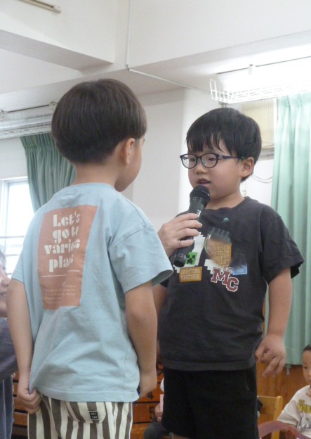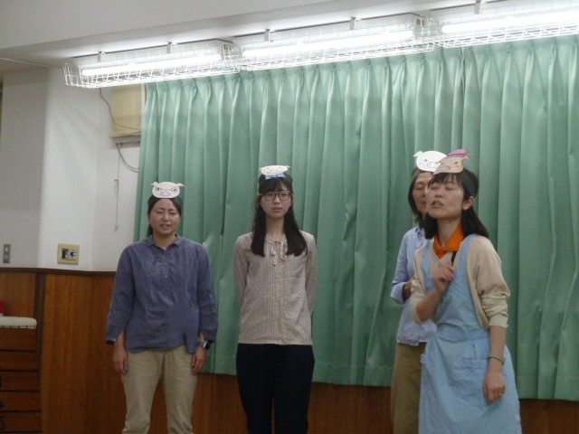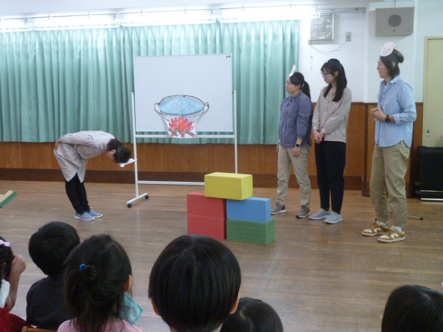 2026.04.284月生まれの誕生会です ホールにみんなで集まり、4月生まれのお友達のお誕生会を開きました。 歌やカード、ペンダントのプレゼント、インタビューなど。お友達にお祝いしてもらいます。 会のお楽しみは先生たちからの劇「3匹の子ぶた」です。 子ぶたを追いかけるオオカミに、子どもたちはハラハラドキドキ。 無事にオオカミが子ぶたたちと仲良くなると、会場から大きな拍手と子どもたちの笑顔がこぼれました。