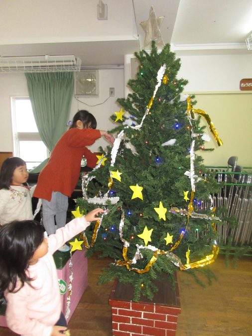 2018.12.12クリスマスツリー完成! 10日(月)にクリスマスツリー飾りを作り、ツリーが完成しました。 星、サンタクロース、トナカイ、天使、モールの4つの飾りの中から作りたい物を選び製作しました。 表情豊かな飾りの数々に、思わずほっこりとしてしまう冨士見のツリー。今年もサンタクロースのお爺さん、来てくれるのでしょうか。 サンタさん!まっています!!