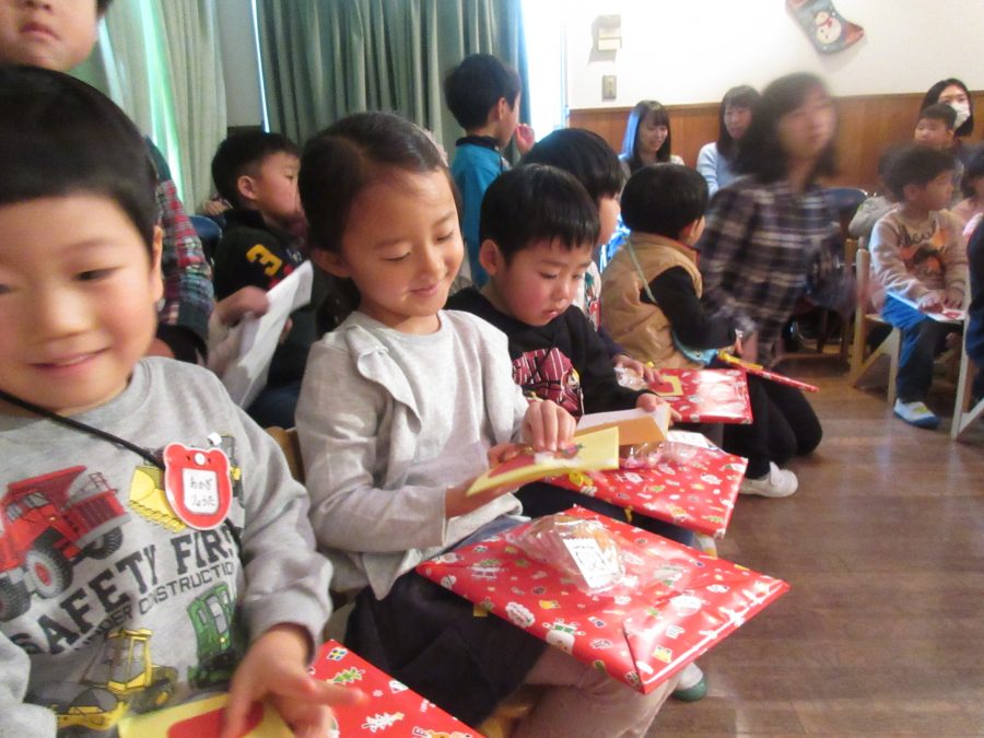 誕生会では在園の保護者の方にトロンボーンの演奏をしていただき、クリスマス会ではサンタクロースが大きな袋を背負い、子どもたちの下へやってきました。最終日も盛りだくさんの保育でした。