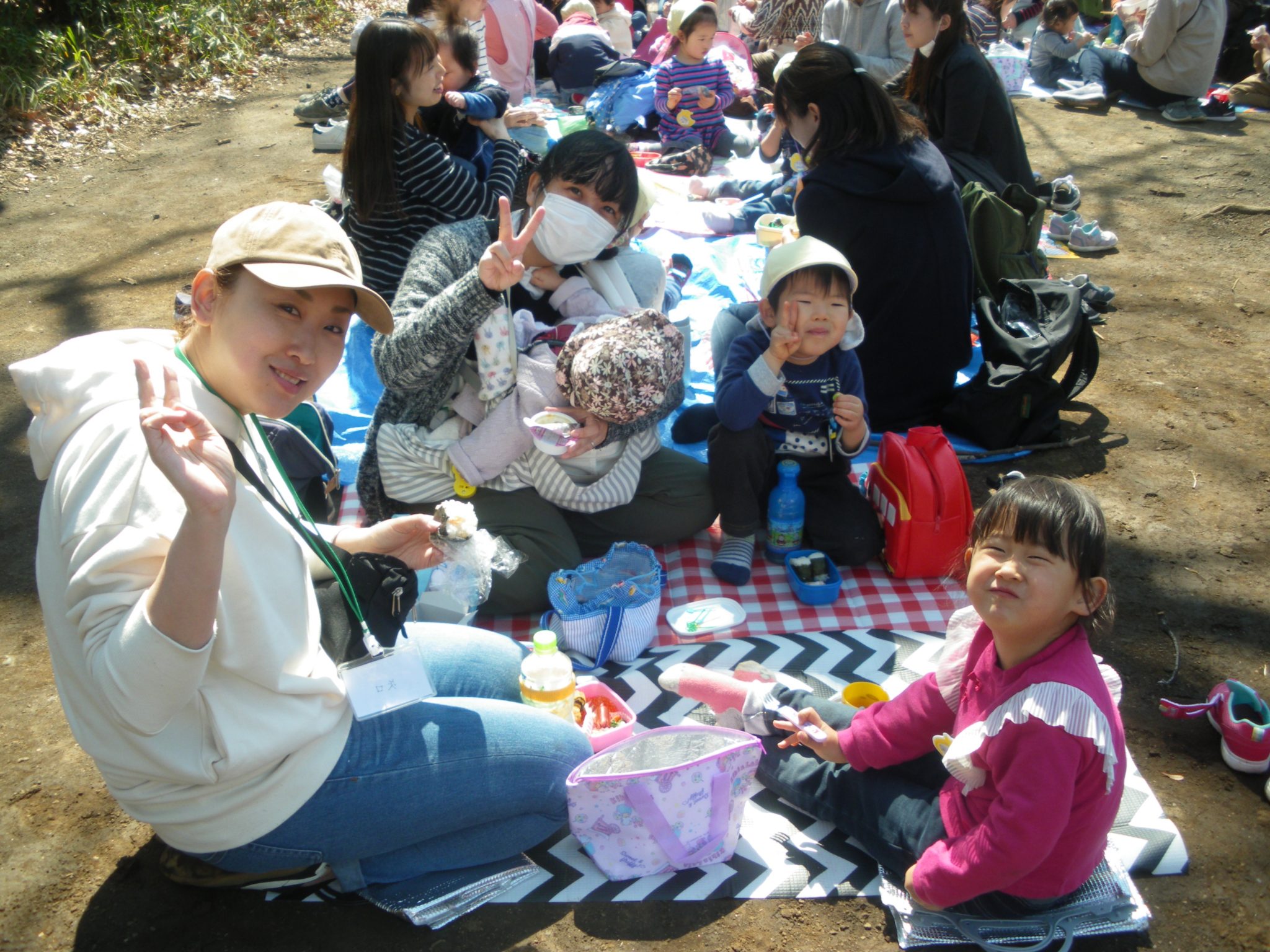 2019.03.15ひよこ組 最後の日 5月から親子で活動してきた、ひよこ組。最後の日を迎え晴天の中、お母さんと手を繋いで綱島公園に行きました。広場でかけっこをしたり、山登りをしたり自然に触れて沢山遊び、みんなでお弁当を食べました。 母子分離の中でも、友だちと一緒に楽しく、のんびりと過ごしていました。お母さん方とも一緒に過ごせた事、嬉しく思います。 一年間、ありがとうございました。