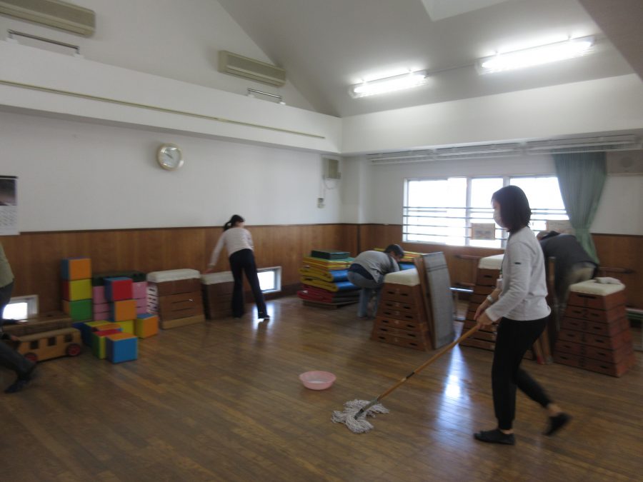 2019.04.06新年度大掃除 見事に満開となった園の桜が出迎える中、新年度を前に新年長の保護者の方々と大掃除を行いました。 一方、一緒に登園した子どもたちは、久しぶりの幼稚園と友だちとの再会に大喜びの様子で早速遊び始め、ひとしきり遊び満足すると、月曜日から使う砂場の掘り起こしを手伝っていました。 ピカピカの保育室で新年度を迎えることができます。ご協力ありがとうございました。