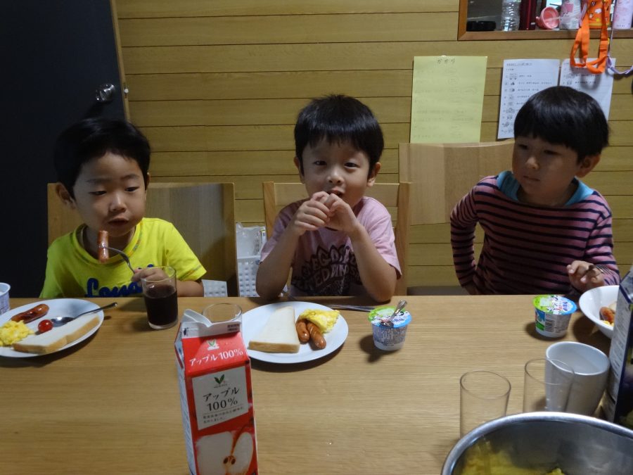 朝方まで降っていた雨もようやく上がり、子どもたちは目を覚ますと一泊保育の続きを確認するかのように部屋中を見回していました。