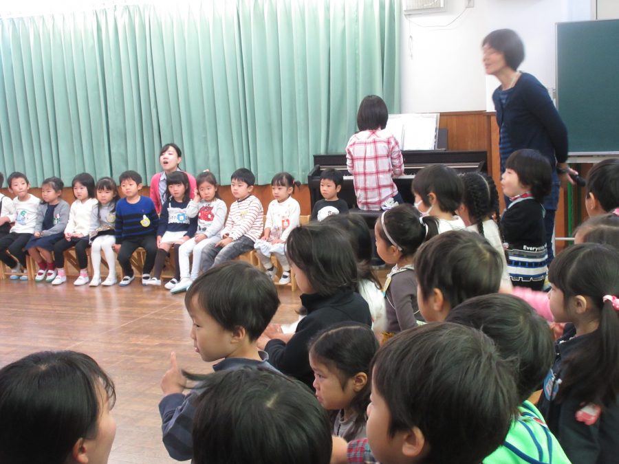 2019.05.22 突然の来客 バスを待つ子どもたちが園庭で遊んでいると、「チンチンどんどん」とどこからともかく聞こえてくる賑やかな音色に、道路側フェンスに集まると、そこにはちんどん屋の一行が音を奏で、練り歩いていました。 遠のくその後ろ姿に呼びかけると、快く園の方角に向きを変え、園長先生が招じ入れると子どもたちは大喜…